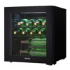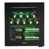 The 16 Bottle Free-Standing Wine Cooler in Black is a perfect addition to any home or office with limited space. Offering a 1.8 cubic foot capacity, it stores up to 16 bottles of your favorite wine. The sleek black design fits effortlessly into kitchens, offices, or bar areas. With an adjustable temperature range of 43°F to 57°F (6°C to 14°C), your wine is always kept at the ideal temperature. The cooler includes two vinyl-coated wire shelves and a staggered shelf for versatile storage. Its reversible door swing allows you to choose the direction of the door, while the molded worktop provides additional space for wine accessories. Backed by a 12-month warranty on parts and labor, this wine cooler offers both style and practicality.