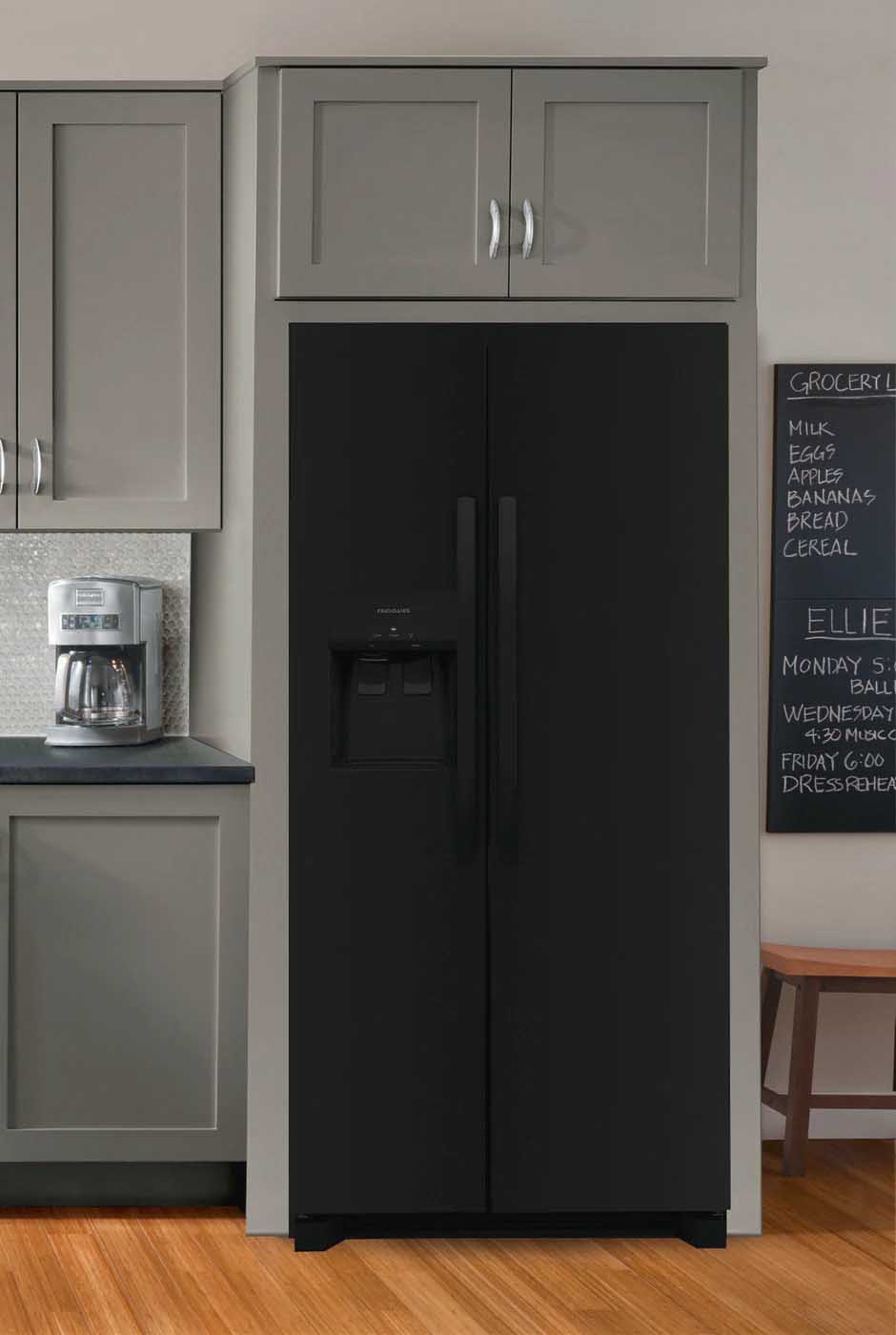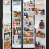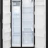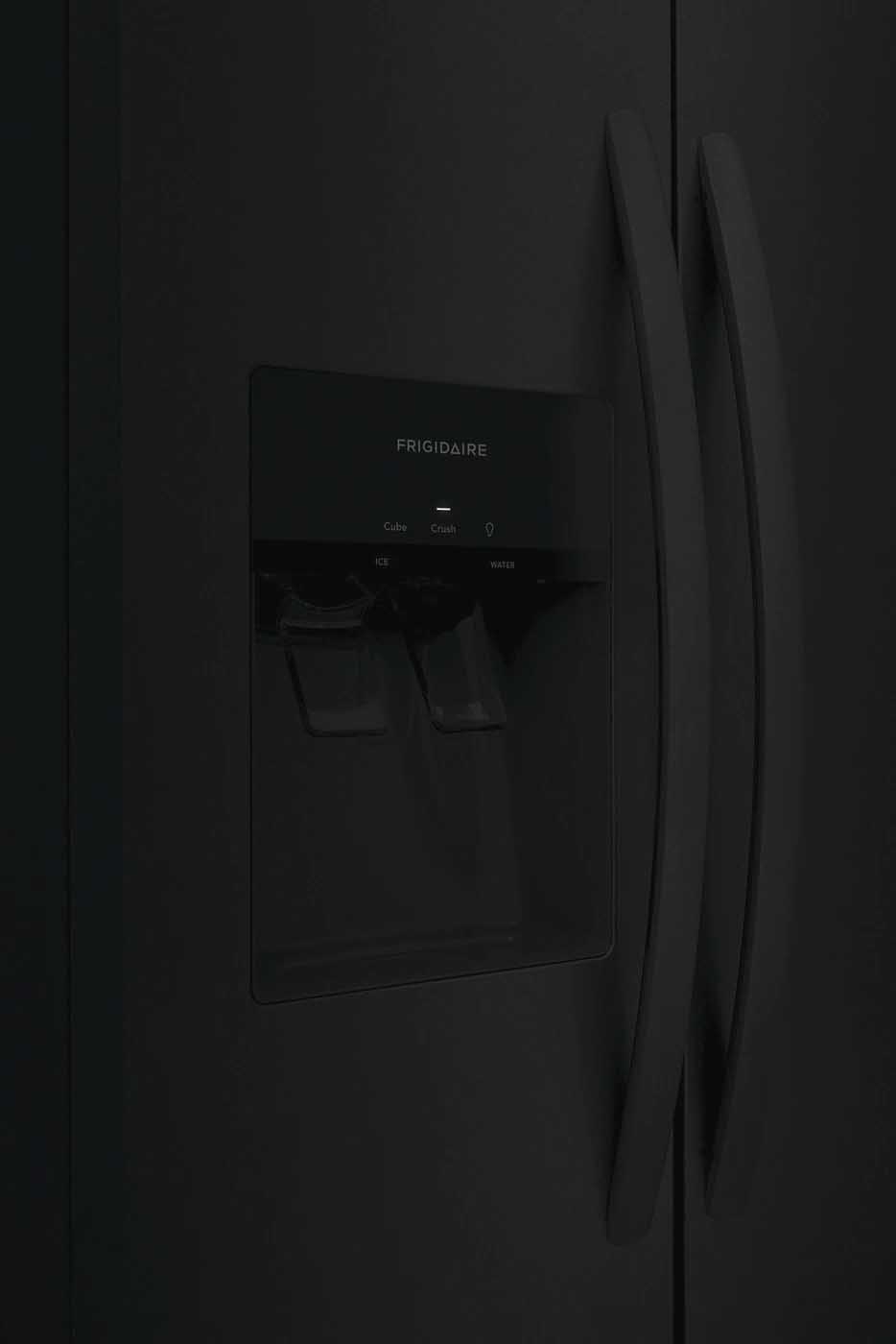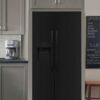 22 cu. ft. 33″ standard-depth side-by-side refrigerator offers spacious storage with adjustable shelving, a convenient ice and water dispenser, and a sleek design for modern kitchens.