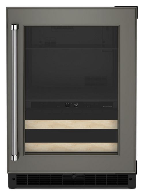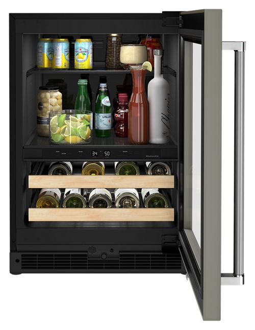 The 24″ Panel-Ready Beverage Center with Wood-Front Racks offers a stylish and efficient storage solution for wine, drinks, and food. Featuring full-extension wood-front racks, it holds up to 14 wine bottles below, with full-width shelves above for additional storage. The unit includes two temperature-controlled zones: one for chilling red and white wines between 42–64°F in the lower zone, and the other for keeping sodas, seltzers, and craft brews at colder temperatures in the upper zone, adjustable from 33°F to 40°F. A Temperature Monitoring System with a sensor alert ensures peace of mind by notifying you if temperatures go beyond safe limits. The fully flush installation with hidden hinges allows the door to sit flush with surrounding cabinetry, providing a seamless, built-in appearance. Additionally, the panel-ready design lets you customize the front panel and handle (not included) to match your kitchen cabinetry perfectly.