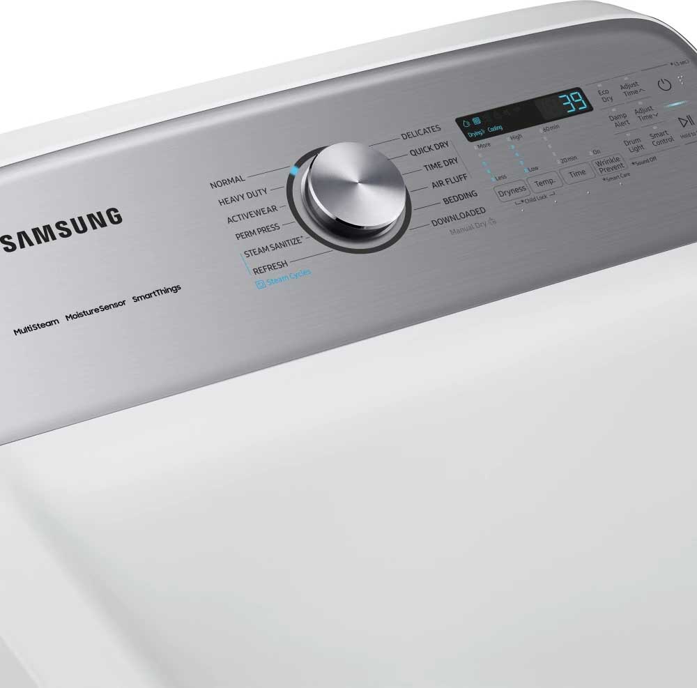 27 Inch Smart Electric Dryer with 7.4 cu ft Capacity, 21 Drying Cycles, 10 Options, Steam Sanitize, Sensor Dry, and Interior Drum Light: White