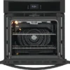 The 27″ Single Electric Wall Oven offers versatile cooking features for any kitchen. With Fan Convection, it ensures faster, more even multi-rack baking results, improving efficiency. The Self-Clean Oven function provides easy maintenance with 2, 3, or 4-hour cleaning cycles, keeping the oven spotless with minimal effort. The Premium Touch Screen Control Panel features a 4.3-inch, full-color display for easy navigation and control. Custom Broil Temp Setting allows precise broiling with a temperature range of 400-550 degrees. The Convenient Cook Time Setting lets you program cooking durations, while the Keep Warm Setting ensures meals stay warm until ready to serve. This oven combines convenience, performance, and efficiency to make cooking easier.