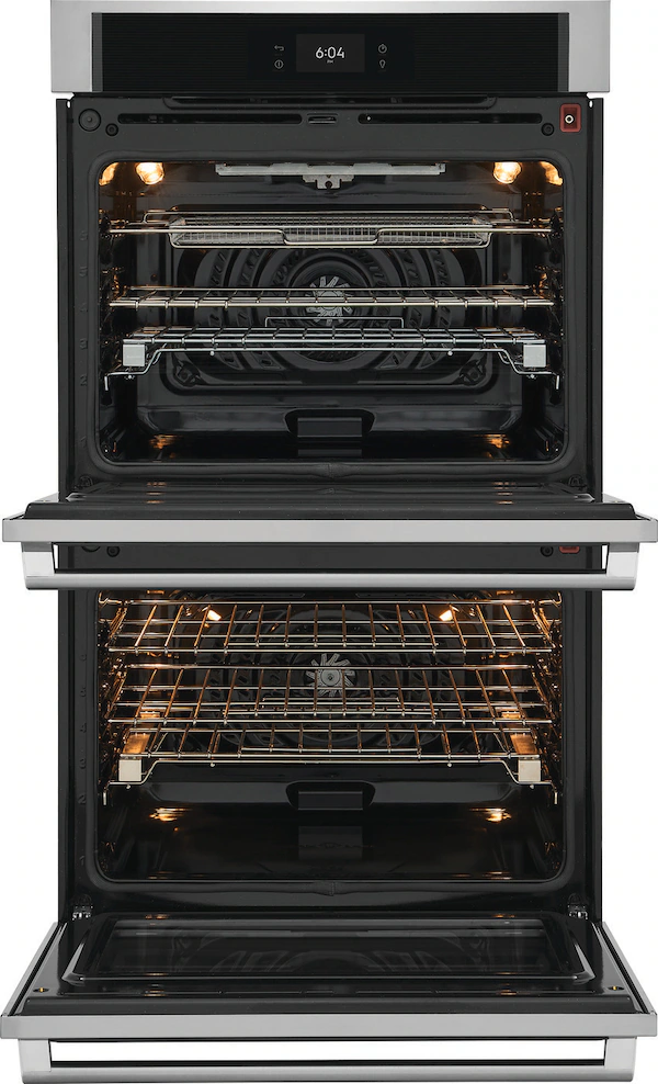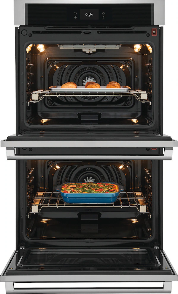 This 30″ Electric Double Wall Oven offers advanced cooking technology with features like Air Sous Vide, delivering precise heat and airflow for sous vide-style results—no water bath needed. Steam Bake & Roast enhances natural flavors, creating crispy, juicy meals. With Built-In Air Fry, enjoy healthier versions of your favorite fried foods using less oil. The powerful convection system ensures even cooking across all racks. Full-Color Touch Controls make operation simple and intuitive, while the No Preheat feature saves time. A 30-Minute Steam Clean cycle keeps your oven fresh without harsh chemicals. Additional highlights include a Temperature Probe for perfect doneness, Luxury-Glide Oven Racks for smooth handling, and Bread Proof and Dehydrate modes for added versatility. Perfect for home chefs seeking performance, convenience, and flavor.