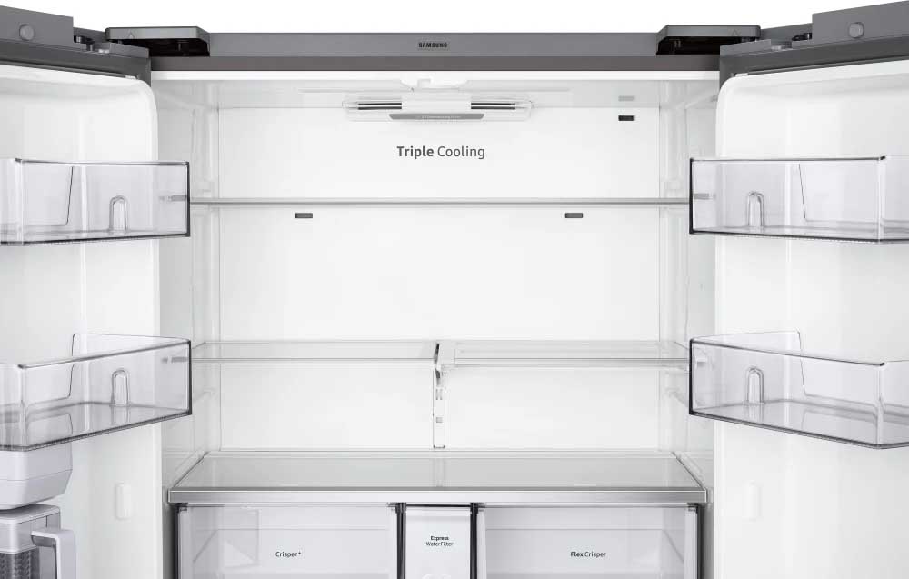 36 Inch Smart 4-Door Flex™ Refrigerator with 29 Cu. Ft. Capacity, AutoFill Water Pitcher, Dual Ice Maker, FlexZone Storage, Flex Crisper, UV Deodorizing Filter, Triple Cooling, and ADA Compliant: Fingerprint Resistant Stainless Steel