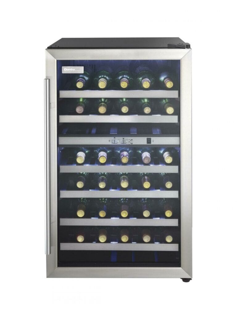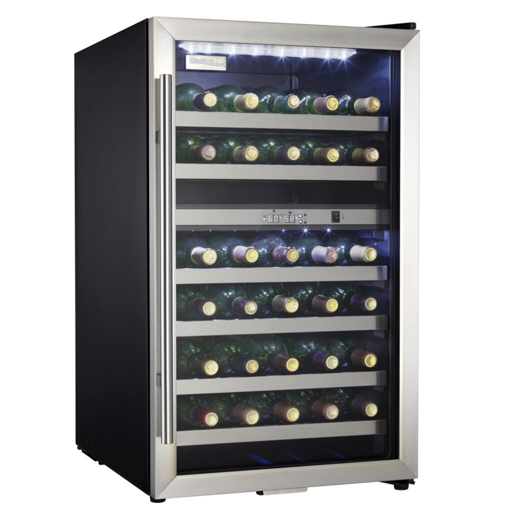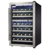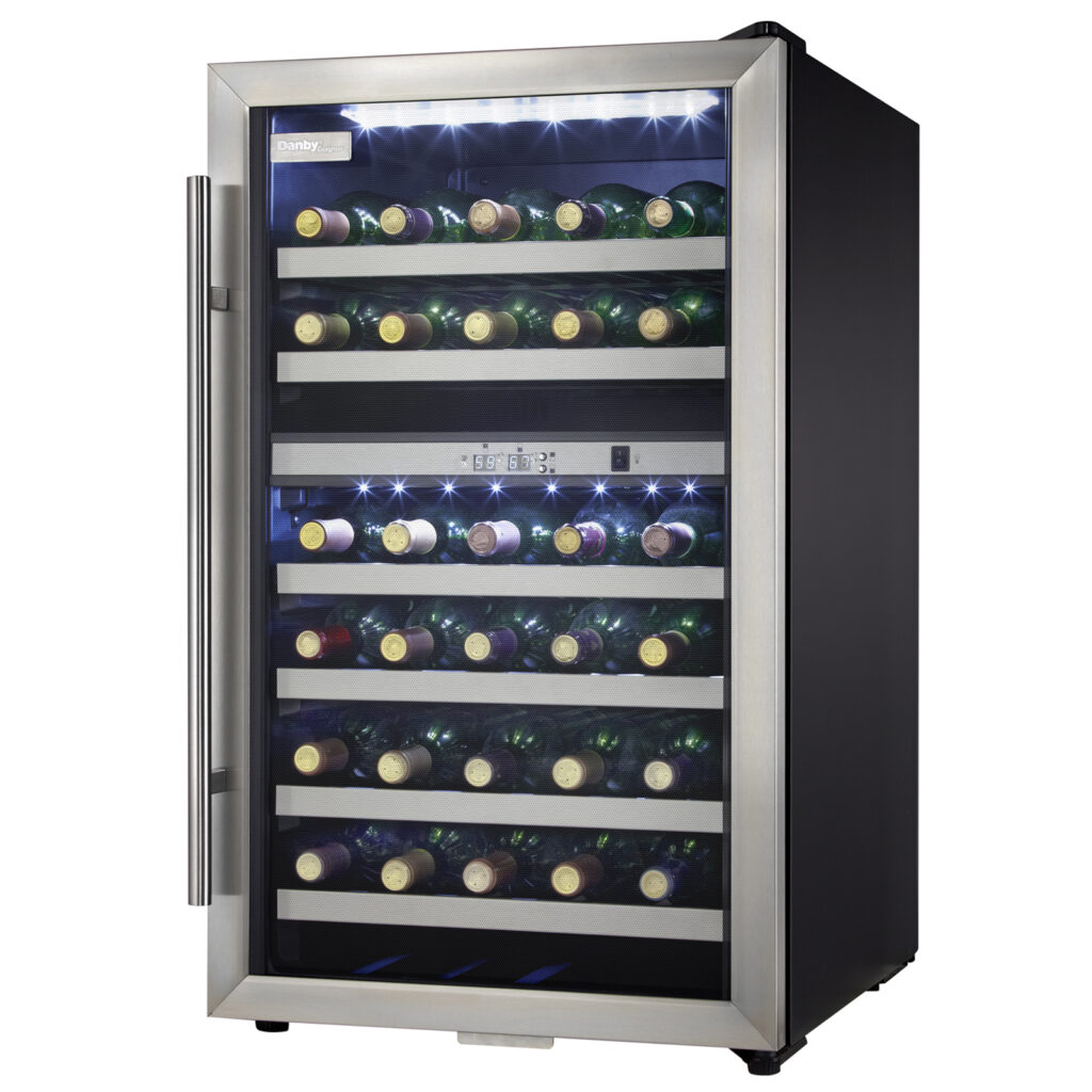 The 38-Bottle Free-Standing Wine Cooler in Black Stainless Steel is a stylish and space-saving appliance designed to preserve and showcase your wine collection. With a spacious 4.0 cu. ft. capacity, it can hold up to 38 bottles, making it perfect for wine lovers living in apartments, condos, or cottages. The dual temperature zones allow you to store red and white wines at ideal temperatures ranging from 41°F to 64°F (5°C – 18°C). Its sleek black stainless finish, white LED interior lighting, and wire shelves add a touch of elegance to any room. The full-length vertical handle and reversible door offer flexible installation options for left- or right-hand opening. Whether you’re entertaining guests or enjoying a quiet night in, this cooler combines functionality and modern design to enhance your wine experience.