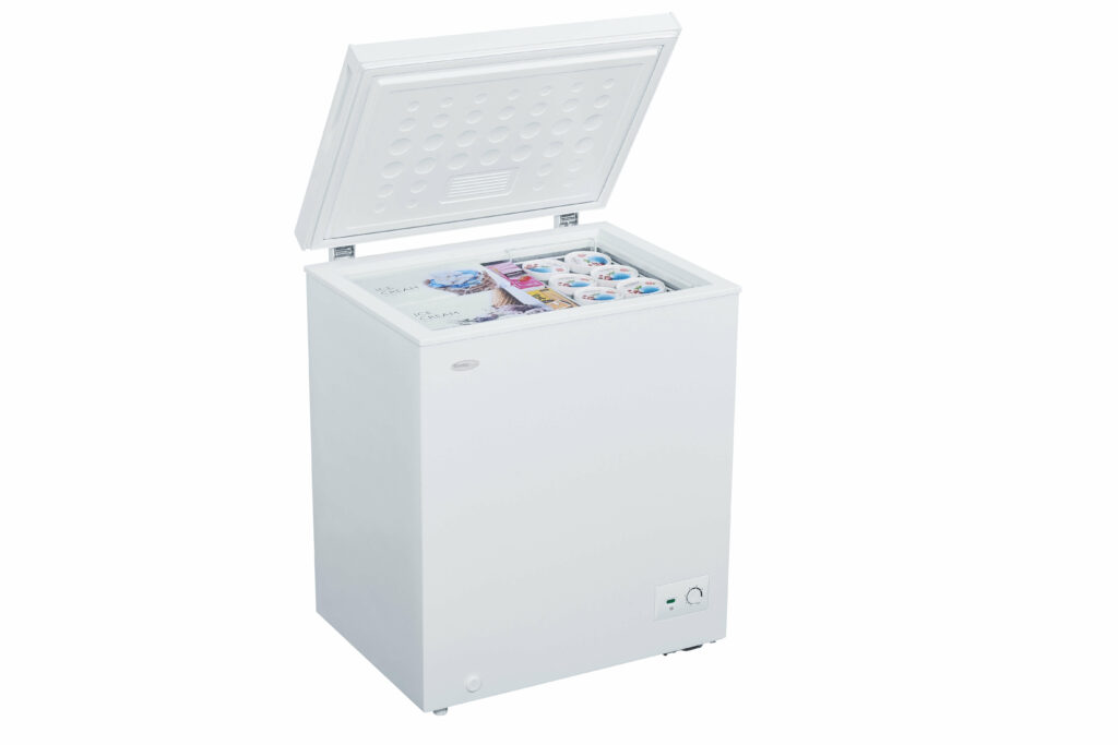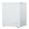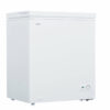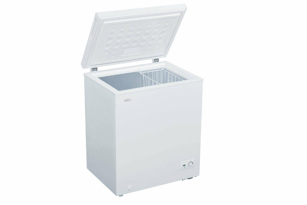 This compact 5.0 cu. ft. chest freezer in white is ideal for tight spaces, measuring just 27.75 inches wide and 21.65 inches deep. Despite its small footprint, it offers a generous 141.6 liters of storage capacity, making it perfect for offices, apartments, cottages, or condos. The manual defrost system, front-mounted drain, and easy-to-clean interior make maintenance simple. It features a foam-insulated cabinet and rounded lid, designed to improve energy efficiency and reduce electricity costs. A strong wire basket is included for organizing frequently used frozen items. The mechanical thermostat, conveniently located on the front, allows for quick and easy temperature control. The freezer operates within a range of -12.9°C to -23°C (8.78°F to -9.4°F), ensuring your food stays safely preserved.