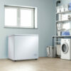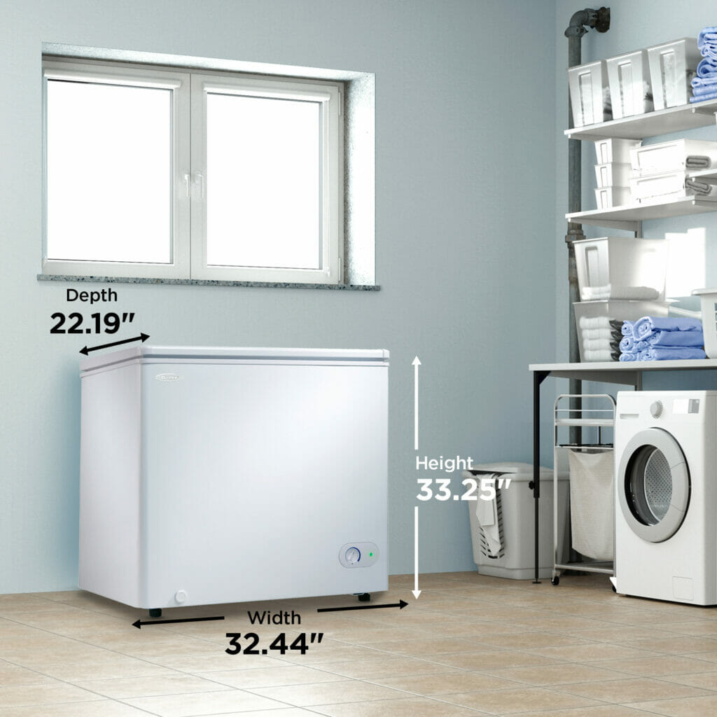 This compact and lightweight 5.5 cu. ft. (156 litres) chest freezer by Danby is perfect for small spaces like homes, offices, apartments, or cottages. Despite its space-saving design, it offers generous storage and includes a vinyl-coated basket to organize frequently used items. The easy-to-clean interior liner ensures quick maintenance. Its foam-insulated cabinet and rounded lid help maintain consistent temperatures while keeping energy use low. A front-mounted mechanical thermostat makes temperature control simple and accessible. The manual defrost system includes a front-mounted drain, making it easy to clean out when needed. With its sleek white finish, it fits seamlessly into any space. This model is not only functional and efficient but also backed by a 5-year warranty on parts and labour with convenient in-home service, giving you peace of mind for years to come.