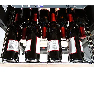 The 50 Bottle Stainless Steel Built-in Wine Refrigerator provides optimal storage and preservation for your wine collection. Featuring six slide-out chrome racks with unstained wood shelf fronts, it stores up to 50 bottles horizontally, keeping corks moist and preventing premature aging. Its sleek black cabinet and full-view blue-gray tinted glass door with black trim enhance its aesthetic appeal. The reversible design and zero-degree clearance door open 90 degrees for easy access. An advanced electronic LED display ensures precise temperature control, with preset settings for red and white wines. The soft interior lighting beautifully showcases your collection, while the UL/CUL approval guarantees safety and quality. Combining elegance with practicality, this wine refrigerator is perfect for organizing, preserving, and displaying your wine in ideal conditions.