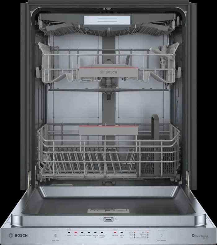 This Bosch 44 dBA Dishwasher delivers ultra-quiet operation, PrecisionWash® intelligent cleaning, and PureDry® energy-efficient drying for spotless results. Featuring a flexible 3rd rack, RackMatic® adjustable upper rack, and space for taller items, it offers exceptional convenience and performance.