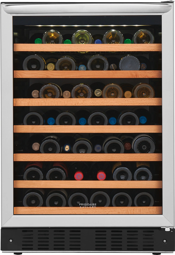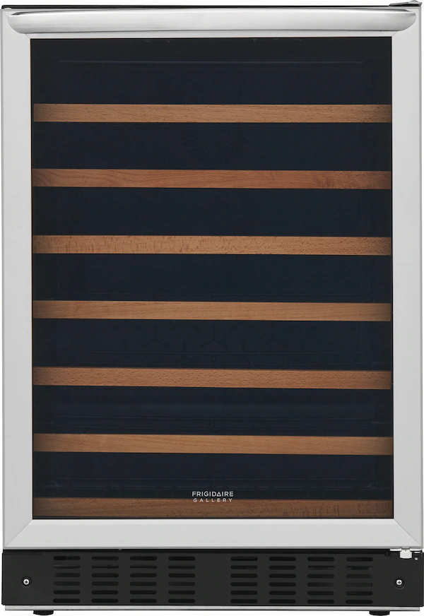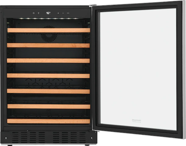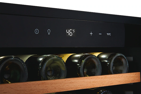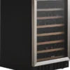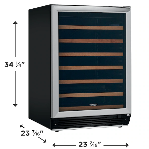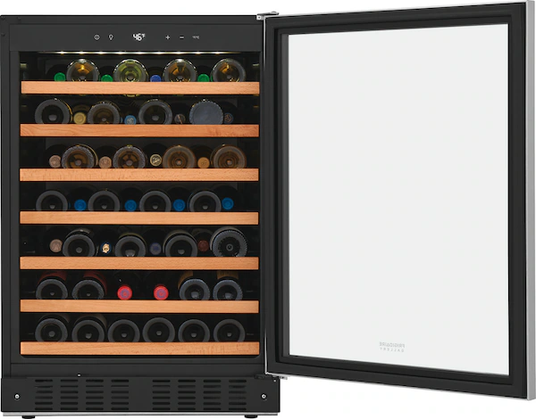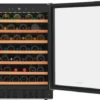 The 52-Bottle Wine Cooler offers a refined and efficient way to store your wine collection. With a wide temperature range of 41º to 64ºF, it ensures each bottle is kept at its ideal condition. User-friendly LED digital controls allow easy temperature adjustments, while bright interior LED lighting provides clear visibility of your wines. Convertible wire racks with elegant wood trim offer flexible storage and a stylish presentation. Designed for convenience and versatility, this cooler supports both freestanding and built-in installations, adapting to various room layouts. The reversible door accommodates left- or right-hand opening, enhancing placement options. Its sleek tinted stainless glass door not only adds a modern look but also shields your collection from harmful UV rays. This wine cooler combines functionality, sophistication, and flexibility—perfect for any wine enthusiast’s home.