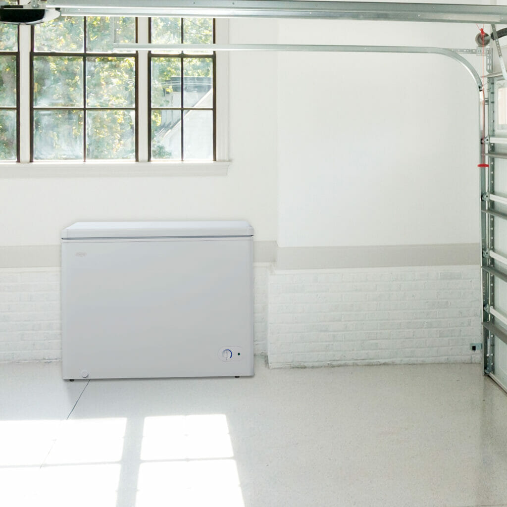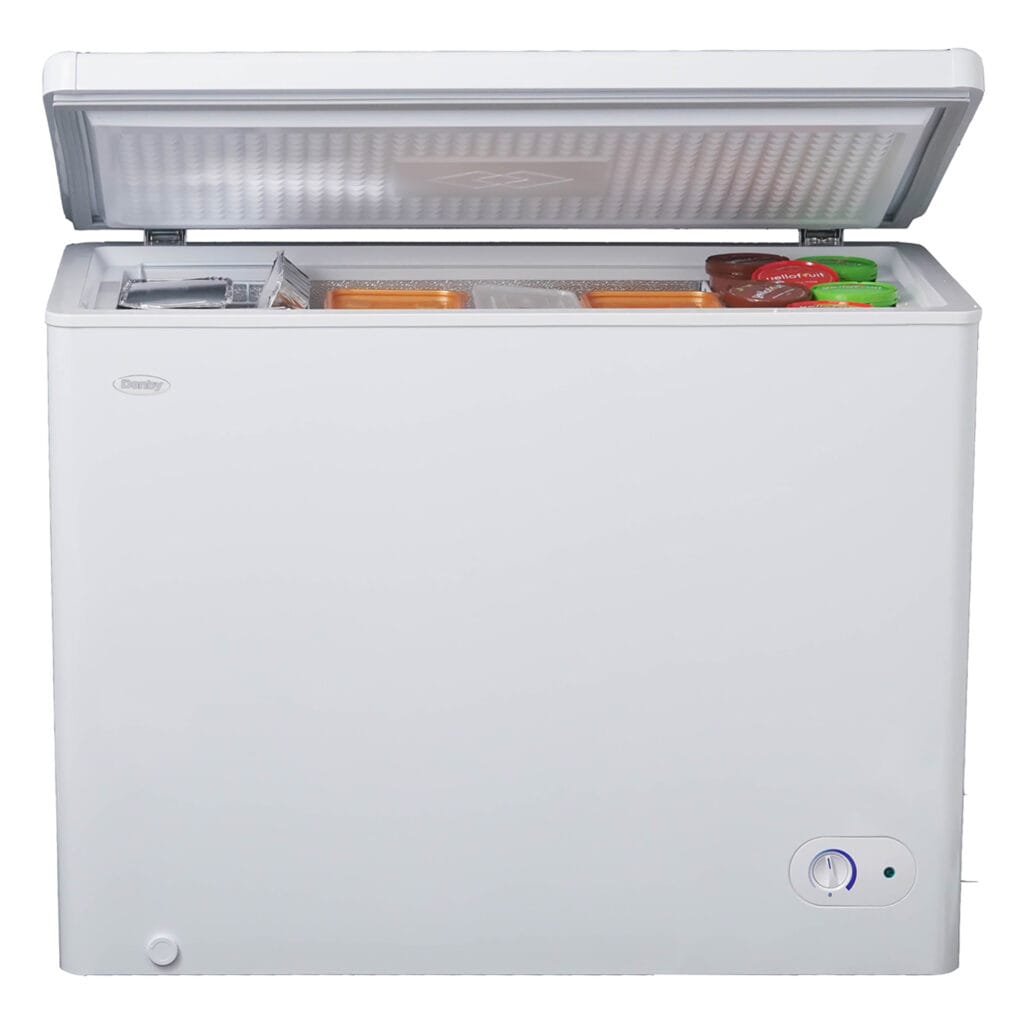 7.2 cu. ft. Chest Freezer in White is an ideal addition to any household or cottage. With a foam-insulated cabinet and rounded lid, it helps reduce electricity costs while maintaining an efficient temperature. The front-mounted mechanical thermostat makes it easy to set and monitor the desired temperature. Offering 7.2 cubic feet (204 litres) of storage, this freezer provides ample space without occupying too much room. It includes a manual defrost system with a front-mounted drain for easy maintenance. A vinyl-coated storage basket helps organize frequently used items, while the interior liner is designed for easy cleaning. This model comes with a 5-year warranty on parts and labor, along with convenient in-home service, offering you peace of mind for years to come.