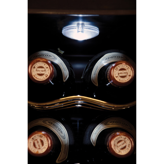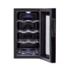This 8-bottle wine cellar combines sleek design with advanced thermoelectric cooling technology, providing the ideal storage for your wine collection. The vibration-free, ultra-quiet system ensures your wine remains at the perfect temperature without the noise of traditional cooling methods. The adjustable LED electronic control display allows you to set the temperature between 46–66°F, making it perfect for both red and white wines. The soft interior lighting enhances visibility, helping you organize and view your collection with ease. With four full-width chrome wine storage racks, this wine cellar securely holds up to 8 bottles. Its compact size makes it ideal for countertop use, adding an elegant touch to any kitchen, bar, or small space. Quiet, stylish, and efficient, this wine cellar ensures optimal conditions for your wine collection.