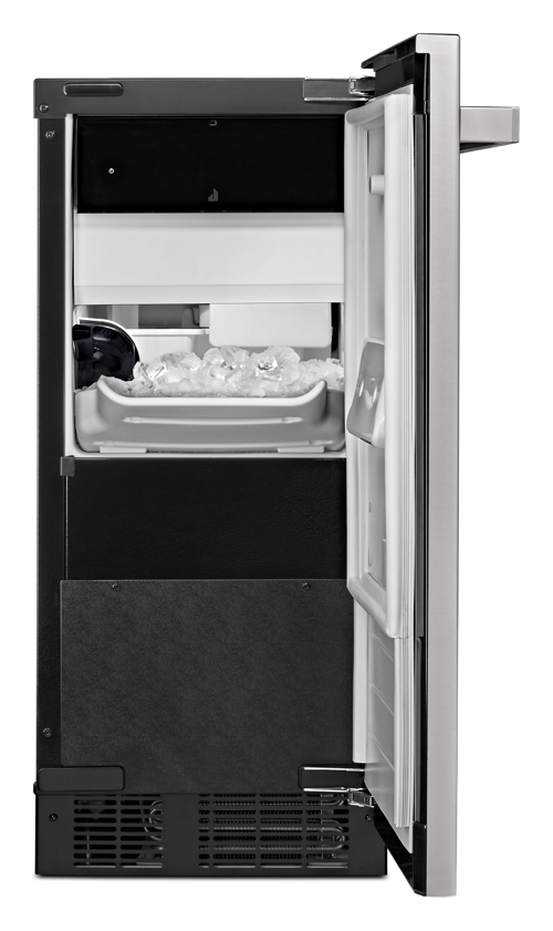 The Panel-Ready 15″ Undercounter Ice Machine with Articulating Hinge offers a seamless design, blending perfectly into your kitchen with its sleek, panel-ready look. The articulating hinge ensures the door opens and closes quietly and securely, while the black cabinet exterior enhances its appearance when exposed. Its frost-free operation eliminates defrosting needs, and the auto shut-off feature halts ice production when the bin is full. With a clean cycle indicator and alert chime, the machine helps maintain performance by reducing mineral scale buildup. Additional features include a door open alarm, replaceable water filter for cleaner ice, and an ice scoop holder. The machine is easily adjustable with precision levelers and a reversible door swing for flexible installation.